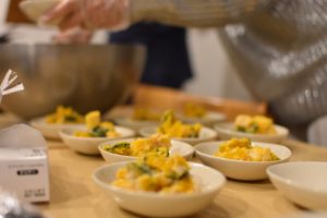 まずはこのイベント恒例の参加者の方々と一緒に盛り付けや簡単な調理などの準備です。