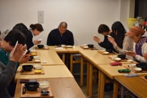 熱々のお粥を口に含むと、素朴で懐かしい味わいが広がります。この日ふるまわれた茶粥は、禅活メンバーの内3人が修行させていただいた大本山永平寺で毎月、ご開山である道元禅師のご命日に振舞われていたものです。