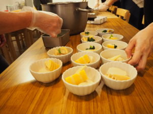 参加者一人一人の手が加わり、調理と配膳が完了。