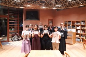 法話が終わったら、写経をするため1階のロビーに戻ります。