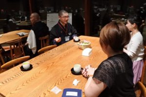 法話を聞き、写経をした後は、お茶とお菓子を食べながら歓談タイム。