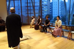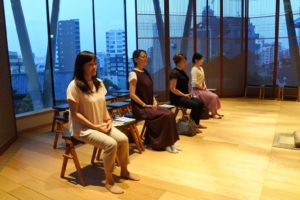 今回は参加者の皆様がお揃いになるまでの間にいす坐禅を行いました。