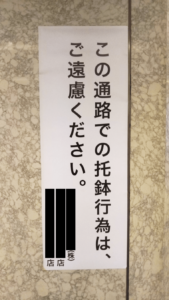 「この通路での托鉢行為は、ご遠慮ください。」