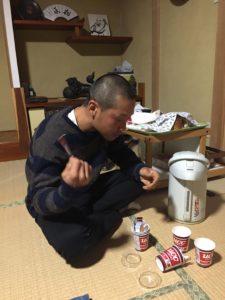 そこにはなんと、本日一晩泊めてもらう約束をしていた修行仲間の黒金寿志さんの姿が!