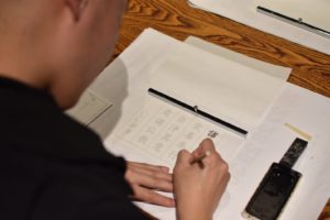 法話を聞いていただいた後は写経。今回は本田真大が担当いたしました。