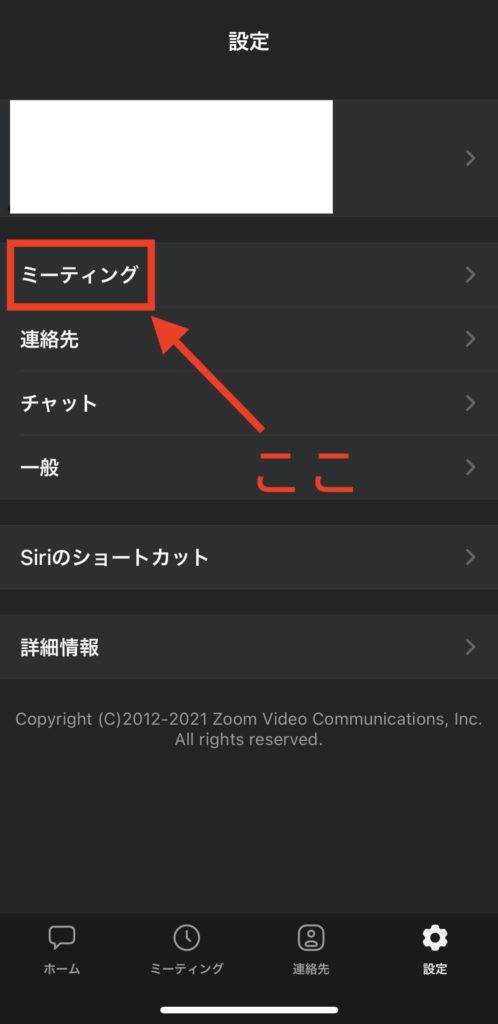 続いて「ミーティング」をタップ。
