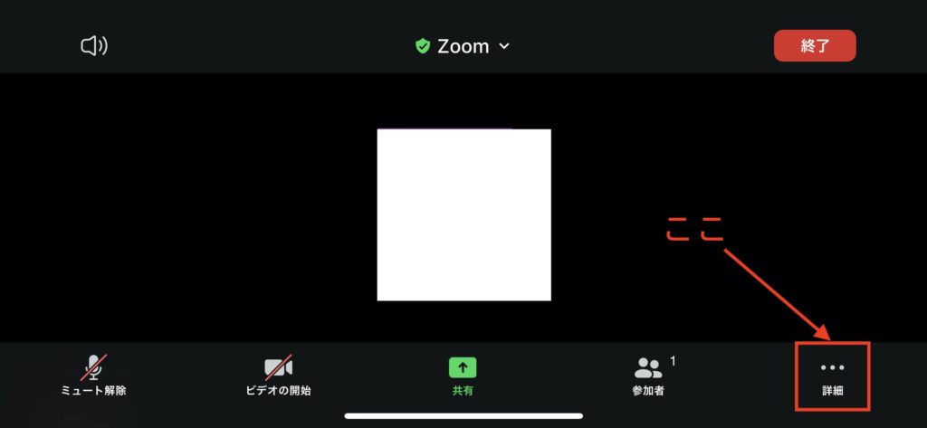 続いてミーティング画面で「詳細」をタップ。
