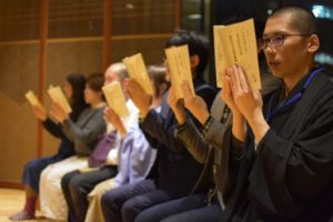 1階でご挨拶をさせていただいた後、5階の本堂で読経を行います。